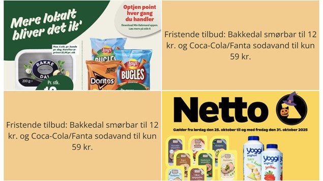 Netto tilbyder en pakke med 24x33 cl Coca-Cola eller Fanta sodavand til en pris på kun 59 kr. pr. pakke. Der er en begrænsning på 6 rammer pr. variant pr. kunde pr. dag. Tilbuddet gælder fra lørdag den 25. oktober til og med fredag den 31. oktober 2025.