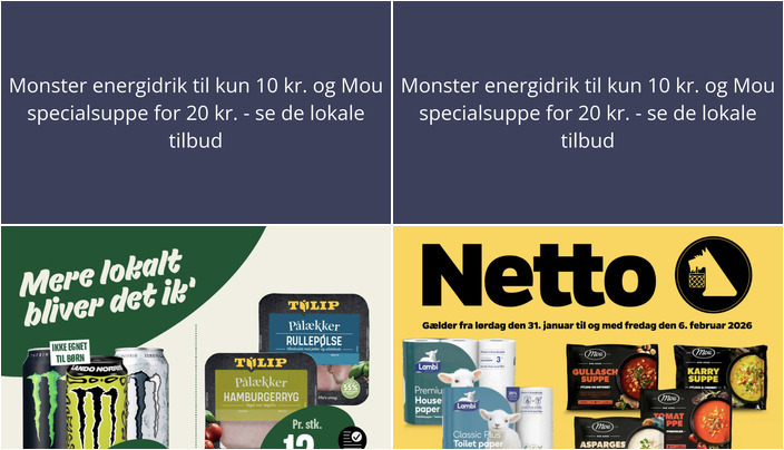 Monster energidrik til kun 10 kr. og Mou specialsuppe for 20 kr. - se de lokale tilbud